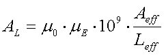 material specific inductance factor, usually in nH/turn2, L =